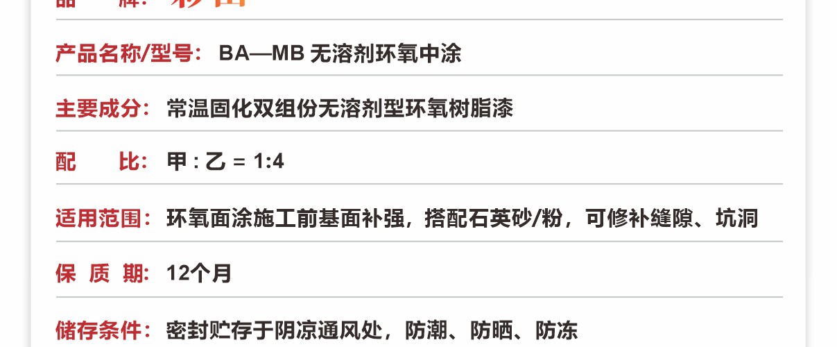 彩田BA-MB環(huán)氧中涂 【無溶劑型】