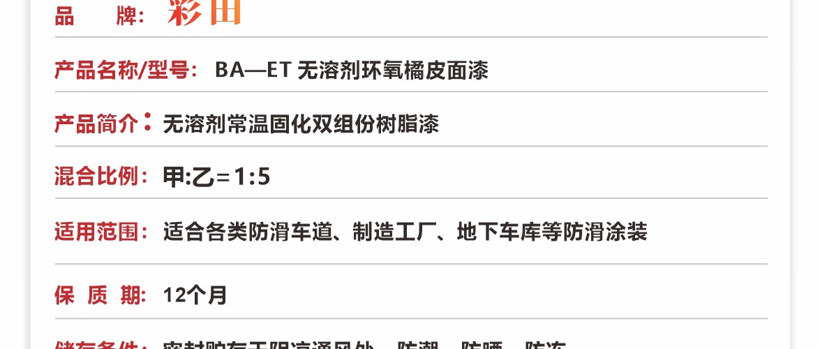 彩田BA-ET無溶劑環(huán)氧橘皮面漆