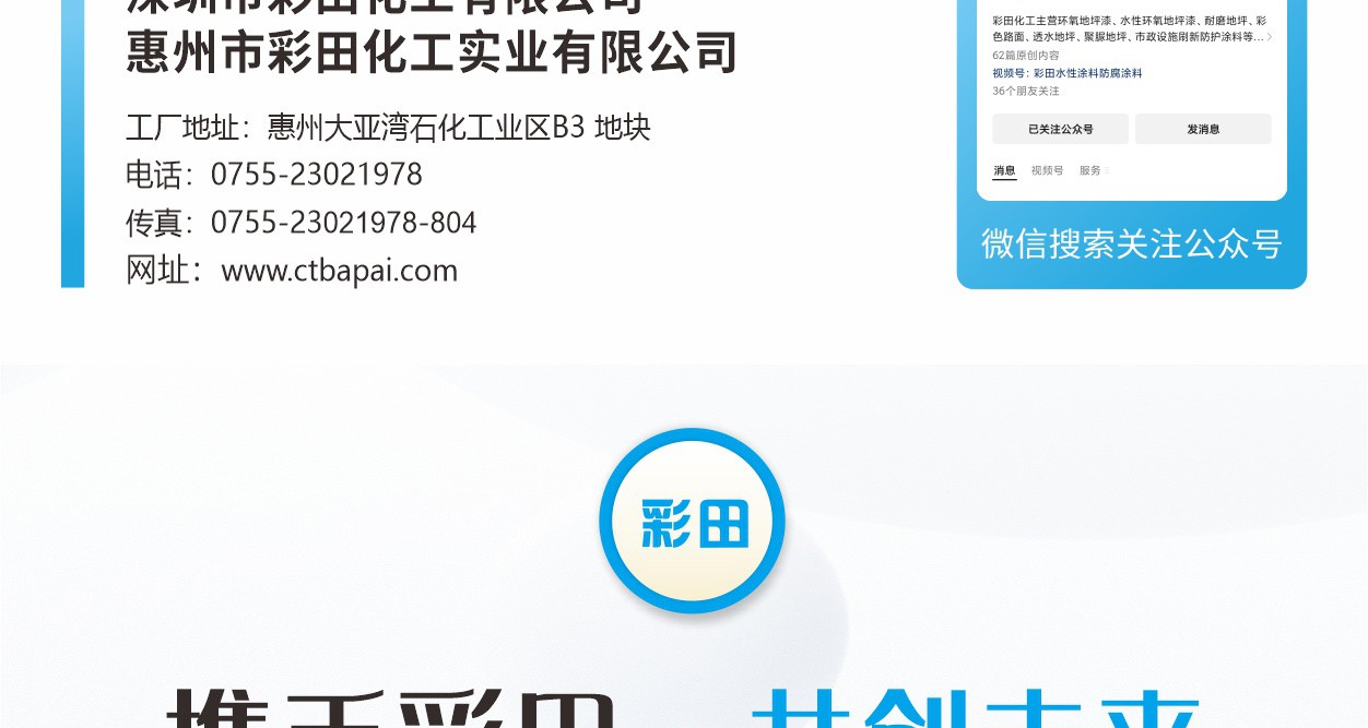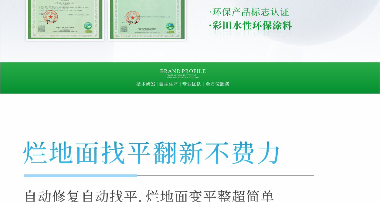 彩田BA-500W水性環(huán)氧自流平是一種常溫固化三組份水性環(huán)氧水泥砂漿漆。 特 性 環(huán)保性:水性配方不含溶劑,施工時(shí)無污染,固化后無毒害物質(zhì)釋放,適合家居、醫(yī)院、寫字樓等對(duì)環(huán)保要求較高的場(chǎng)景;施工便捷性:水性自流平砂漿具有極佳的流動(dòng)性,可快速鋪展覆蓋地面,施工效率比傳統(tǒng)工藝提升顯著;表面平整度高:其材料在重力作用下能自動(dòng)填補(bǔ)地面微小坑洼,形成無縫、光滑的表面,減少后續(xù)鋪設(shè)地板材料時(shí)的損耗,提升整體美觀度基層處理滿足要求后,材料可傾倒后自動(dòng)找平,大幅縮短施工周期;水性環(huán)氧樹脂乳液的加入大大提高了其硬度以及粘結(jié)強(qiáng)度。 用 途 廣泛應(yīng)用于工業(yè)廠房、車庫、寫字樓、展廳、醫(yī)院、車站、體育館等地面涂裝;也可以用于居家、別墅、溫馨小空間等場(chǎng)所;特別適用于需要做大量找平層的地坪涂裝。