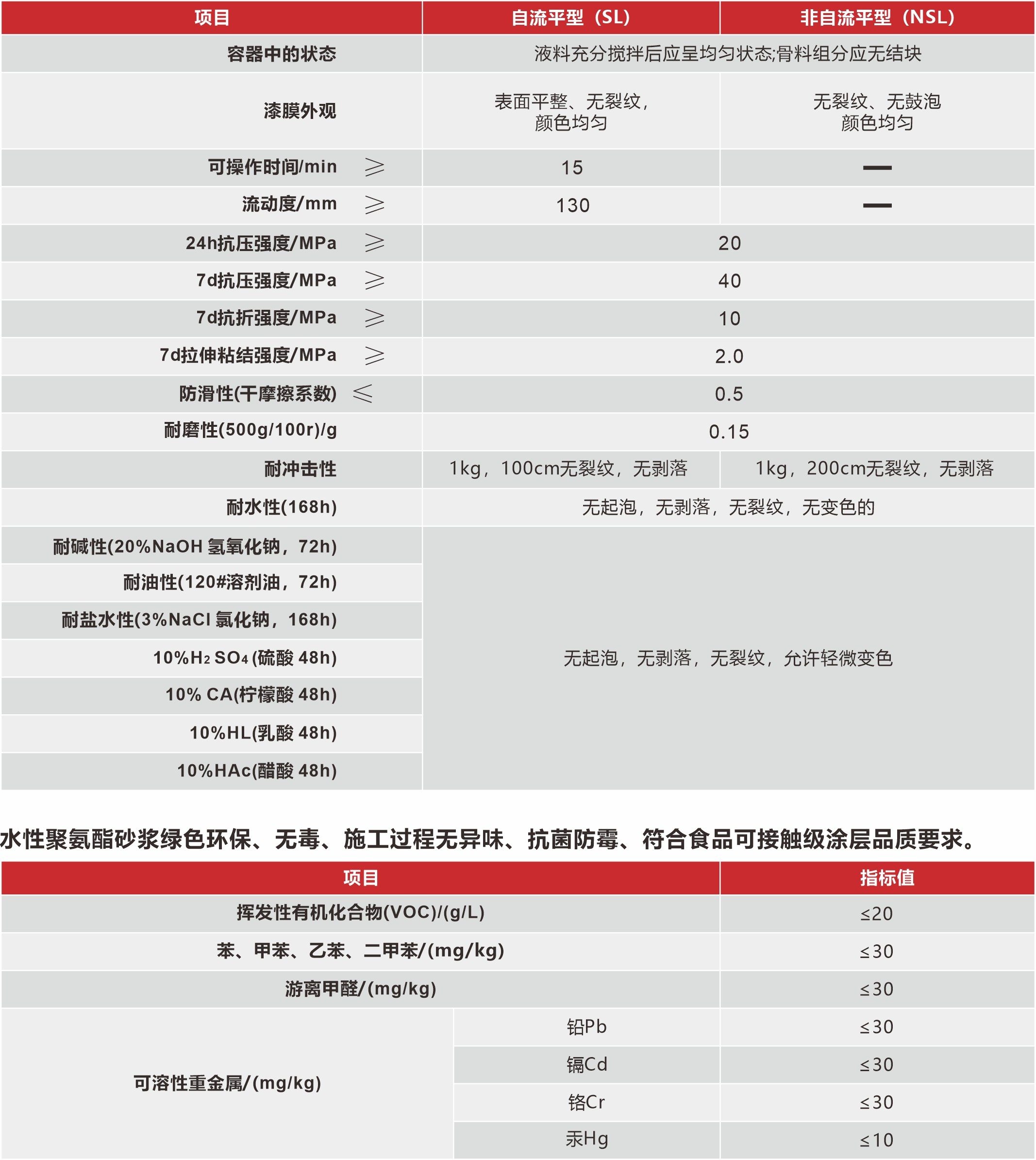 水性聚氨酯砂漿-技術(shù)指標(biāo)