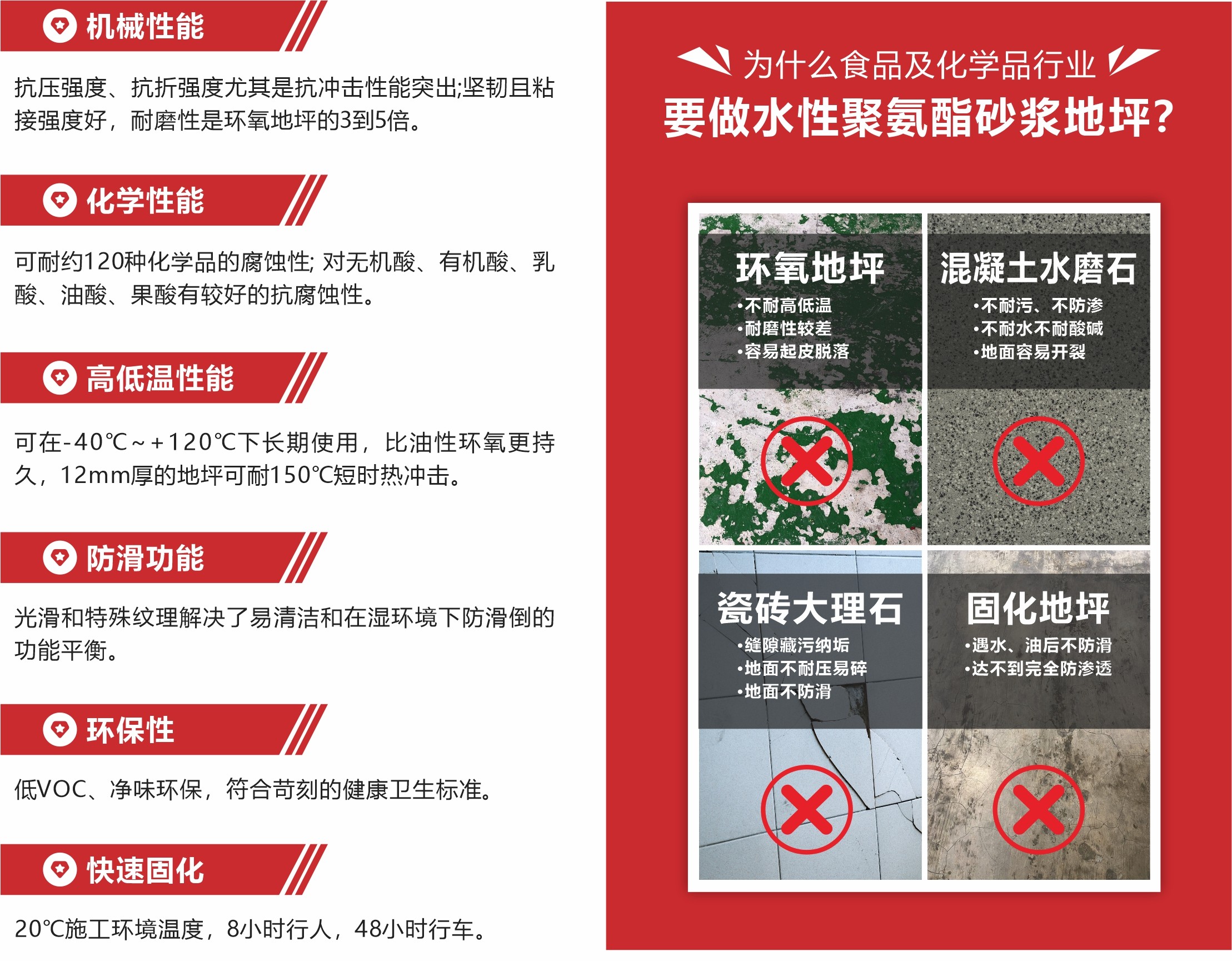水性聚氨酯砂漿地坪系統(tǒng)自上世紀(jì)70年代在歐美誕生應(yīng)用至今,全球數(shù)百萬平方米的案例證明其具有獨(dú)特的高性能,特別適合在食品衛(wèi)生、化學(xué)品腐蝕、高溫濕熱、水浸濕滑、低溫冷凍、重載荷強(qiáng)沖擊的極端工業(yè)環(huán)境下使用。水性綠色,低碳環(huán)保。