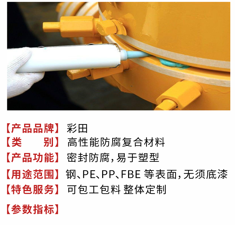 彩田粘彈體防腐膏主要用于一些難于防腐的異形設備諸如法蘭、閥門、各種管配件、吊環(huán)、人孔等所設計開發(fā)的一種腐蝕防腐新產品。簡單介紹下粘彈體防腐膏的操作說明: