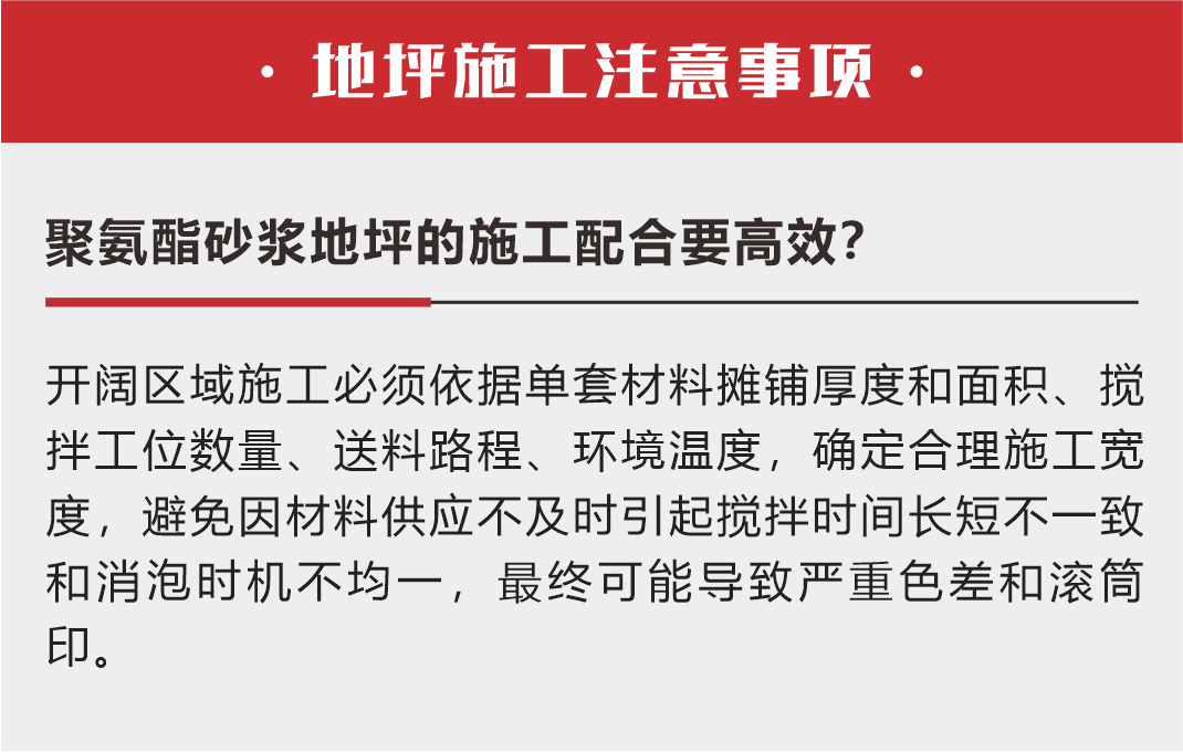1) 攪拌設(shè)備放在工作區(qū)域附近,保持?jǐn)嚢鑸?chǎng)地清潔,避免溢出材料留在基層上,否則會(huì)在施工該區(qū)域時(shí)可能產(chǎn)生鼓包。
