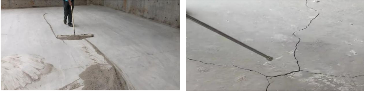 3、對(duì)于細(xì)小裂縫應(yīng)先用磨機(jī)切成V型槽,并用快干無溶劑環(huán)氧砂漿進(jìn)行灌縫處理;