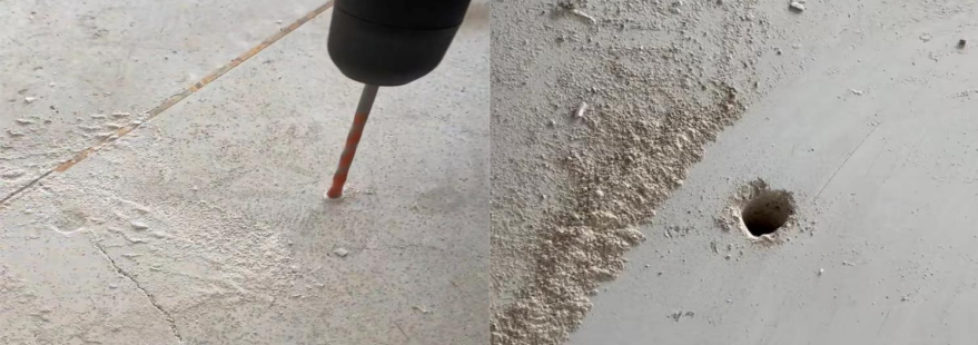 第二步:在標(biāo)記處打孔,把孔里面的灰塵清理干凈。