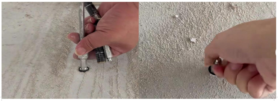 第三步:把注漿針頭安裝在孔洞里,并把針頭擰緊。