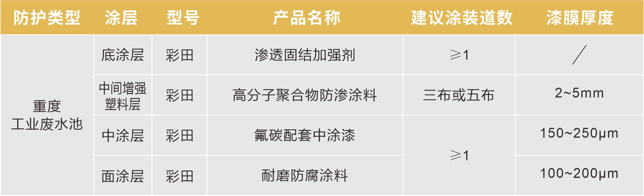 化工、火力發(fā)電、制藥、水質(zhì)凈化等重腐蝕環(huán)境的混凝土貯池長(zhǎng)期受化學(xué)品、工業(yè)污水、工業(yè)大氣、紫外線、固體顆粒的流動(dòng)磨損、沖刷等因素的作用,存在著物理、化學(xué)、生物腐蝕等多種較為復(fù)雜的腐蝕形態(tài),嚴(yán)重影響使用壽命。因此,重度工業(yè)廢水池防護(hù)涂層需要有優(yōu)異的物理機(jī)械性能、耐化學(xué)品性、防腐蝕性能。
