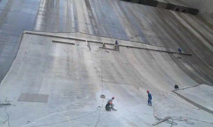 (3)外露環(huán)境下發(fā)電站、水電大壩、溢洪道等水工建筑物的降糙、抗?jié)B、防腐和抗沖磨沖磨防護(hù)。