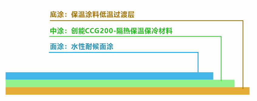 隔熱保溫保冷材料的低溫過渡層方案,主要是為了解決施工物體表面的結(jié)露現(xiàn)象,當施工物體表面存在冷凝水,我們要先進行保溫涂料低溫過渡層施工,再進行隔熱保溫保冷材料施工。涂層結(jié)構(gòu)如下圖:
