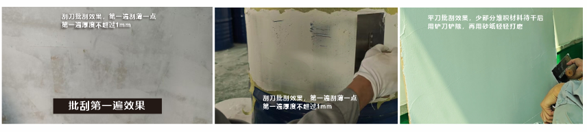 2、不加水將材料分散均勻后,可進行批刮施工,正常情況下批刮不需要加水;