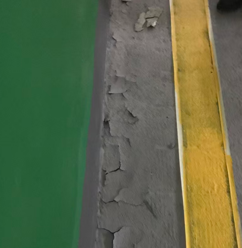 地下車庫長期受車輛荷載振動,加劇了邊緣部位的疲勞破壞;同時,潮濕環(huán)境可能削弱材料間的粘結力,加速翹邊。